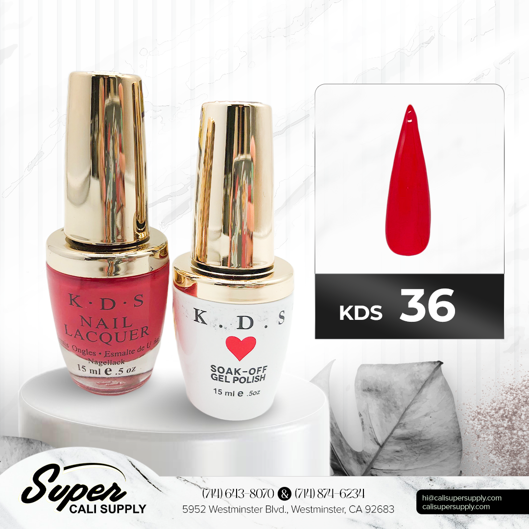 PRODUCT DETAILS: K.D.S SOAK-OFF GEL POLISH & LACQUER   Size: 0.5 oz Brand: KDS Collection: KDS Gel & Lacquer Duo Type: Gel & Lacquer Features: Gel & Lacquer Condition: New Item PLEASE NOTE: Color samples/...
