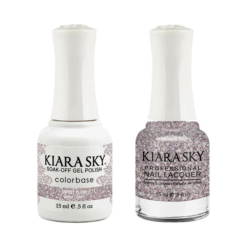 Kiara Sky Gel Nail Polish Duo - 497 Glitter Purple Colors - Sweet Plum